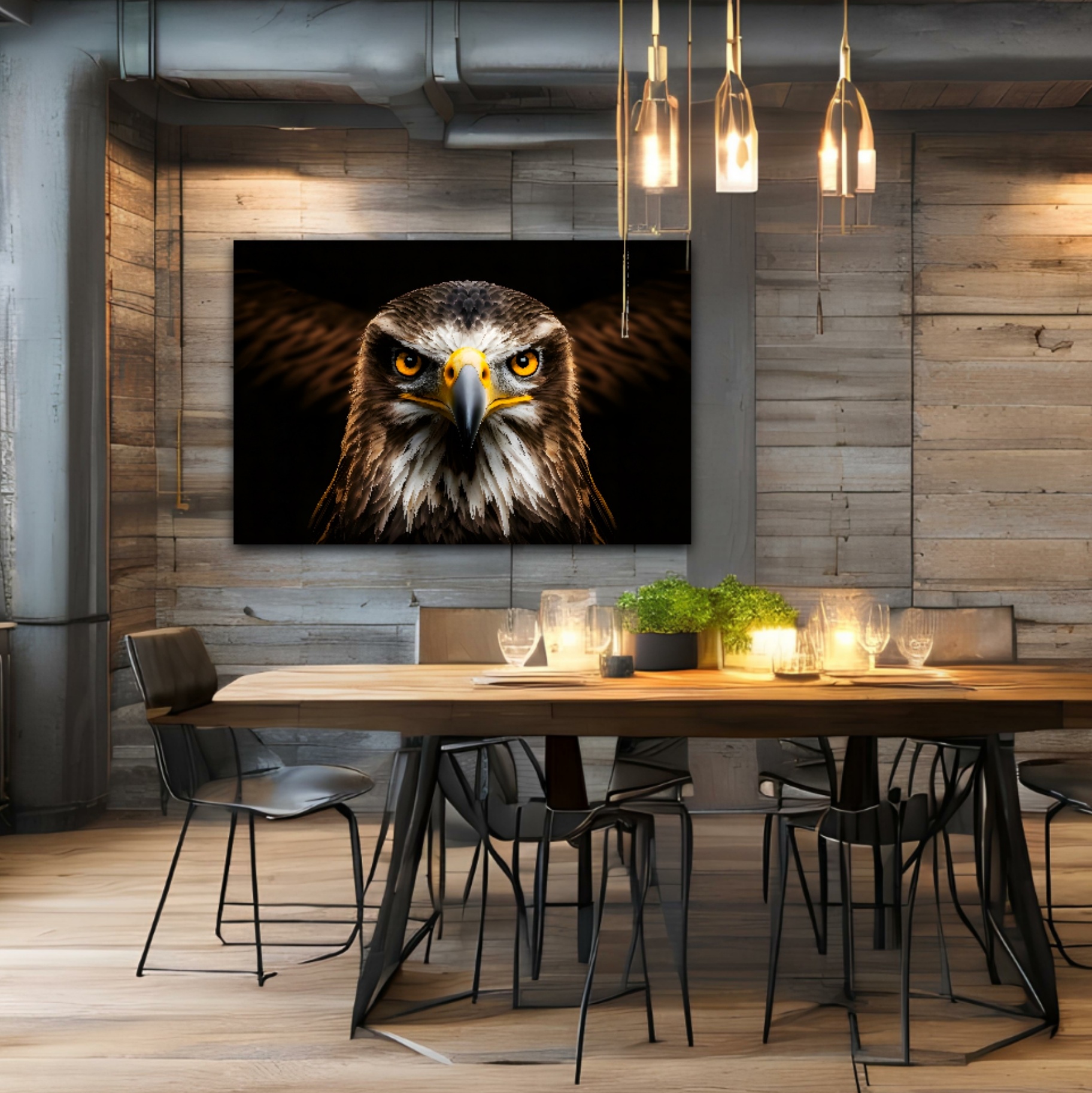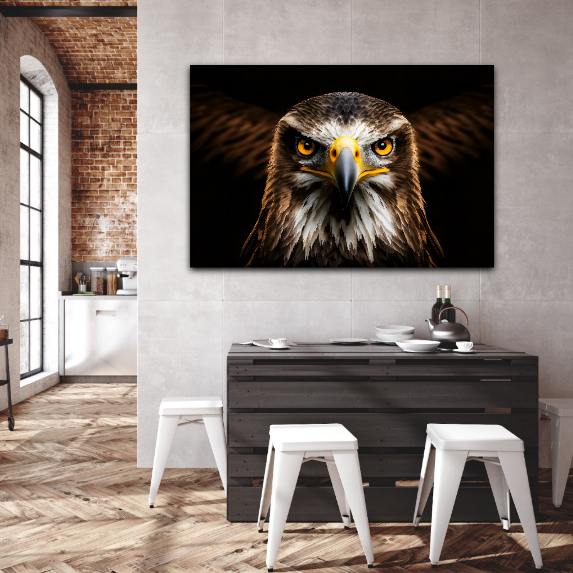 Das Wandbild Adler ist ein zeitloses und stilvolles Kunstwerk, das jeden Raum aufwertet und für eine besondere Atmosphäre sorgt. Mit seiner kraftvollen Ausstrahlung und dem beeindruckenden Motiv ist es ein Highlight für jeden, der die Schönheit der Natur und der Tierwelt schätzt.