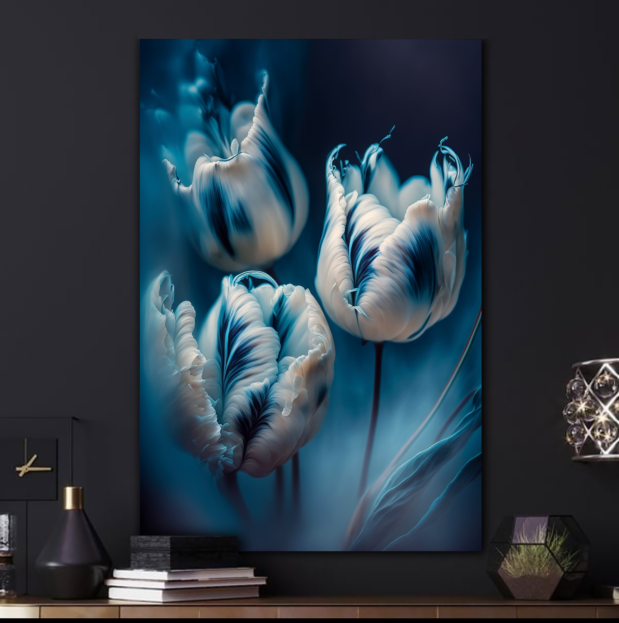 Bestellen Sie noch heute das Wandbild Blue Tulips von MacroBiH und lassen Sie sich von seiner Schönheit und Eleganz verzaubern!