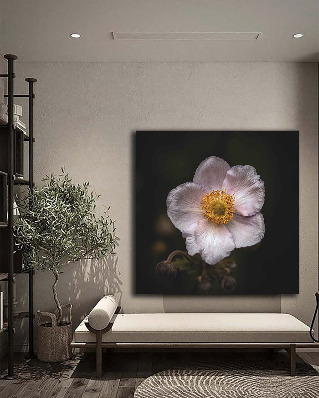 Willkommen in der zauberhaften Welt der Blüten! Das quadratische Wandbild Blütenzauber von Moodyflowers verleiht Ihren Räumen einen Hauch von Eleganz und Naturschönheit. Tauchen Sie ein in die sanfte Schönheit einer einzelnen Blüte und lassen Sie sich von ihrer Anmut und Zartheit verzaubern.