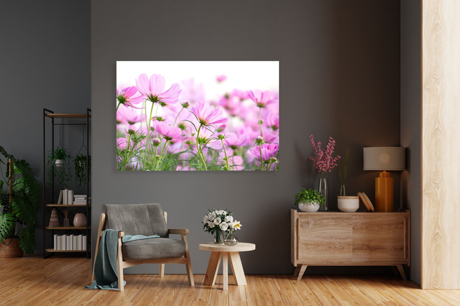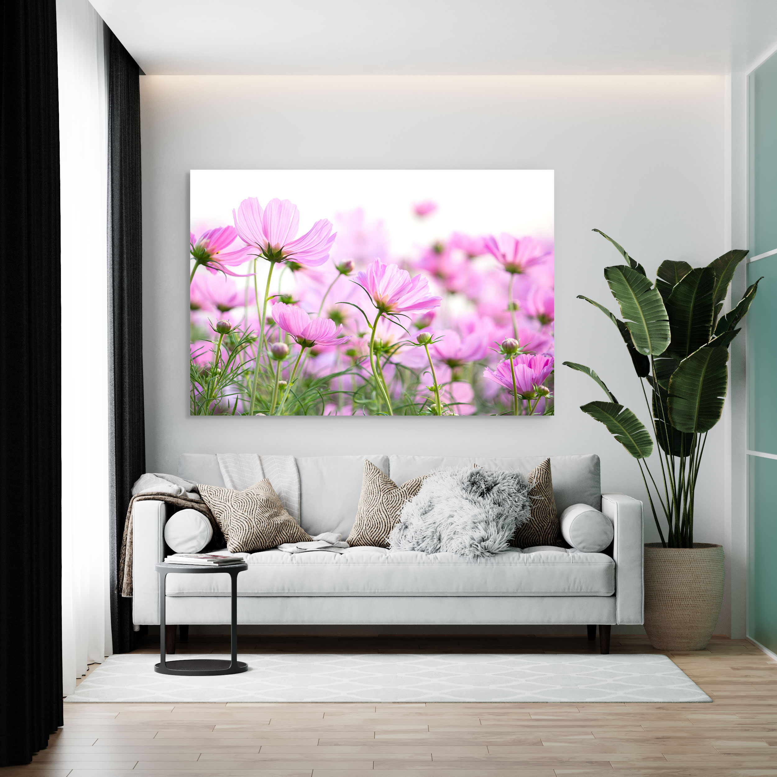 Das Bild zeigt zarte Blumen in herrlichen Pastellfarben auf einem Feld. Für Romantik, Wärme und Sinnlichkeit im Wohn- oder auch Schlafzimmer sind botanische Fotografien die perfekte Wahl. Diese zarte Fotokunst ist daher eine wunderbare Ergänzung für ein behagliches Zuhause.