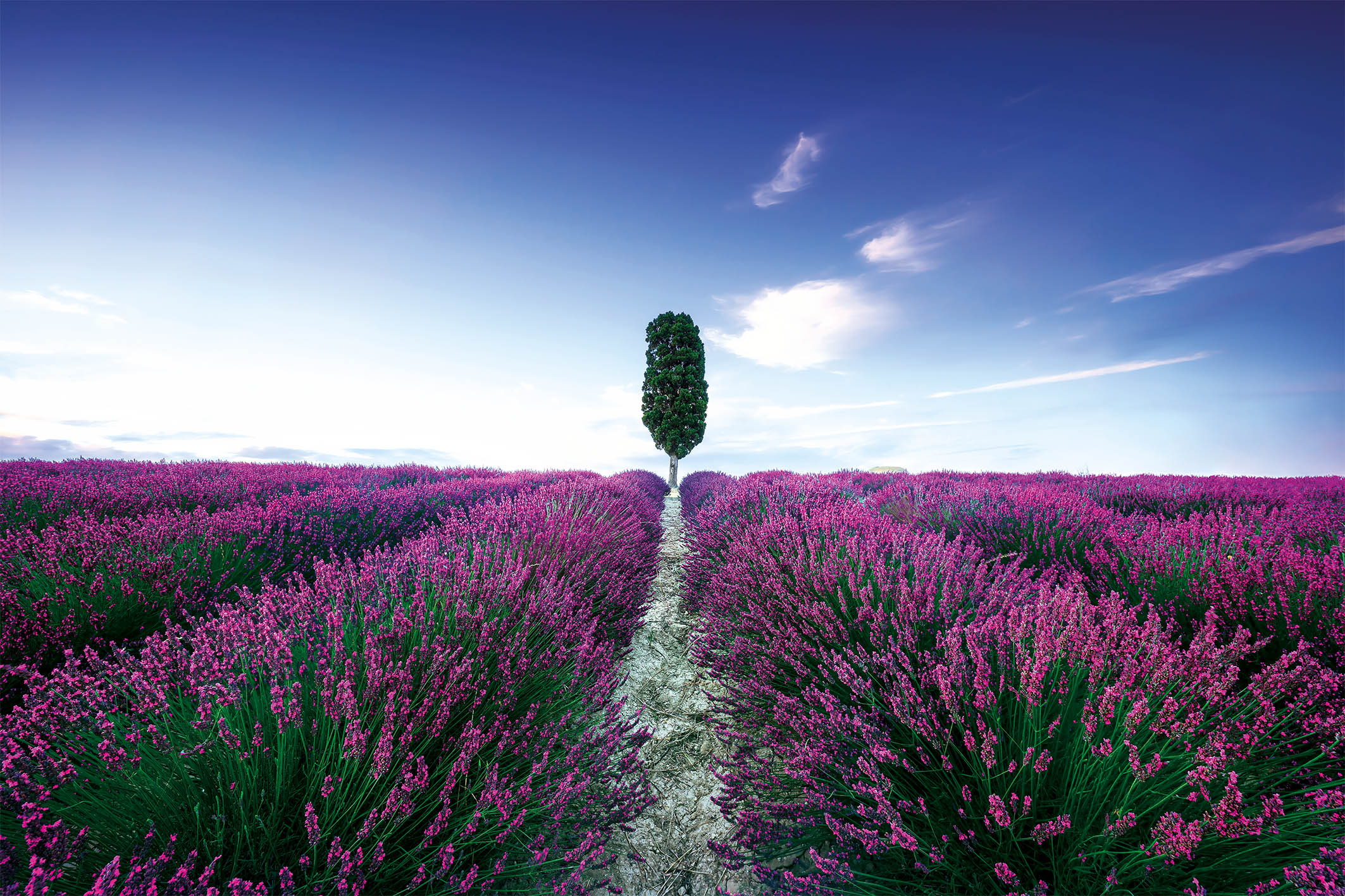 Suchbegriffe wie Acrylglasbild, AluVerbund, AluDibond, Poster, Natur, Landschaft, Lavendel, Blumenfeld, Farbenpracht und Wandbild kaufen hat Sie bei der Motivauswahl inspiriert? Dann ist das Wandbild Blumenfeld Lavendel mit Baum genau das richtige für Sie!