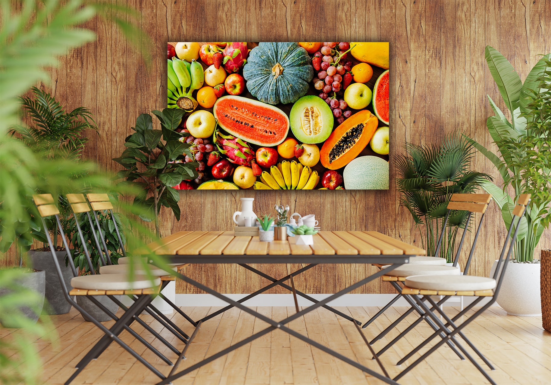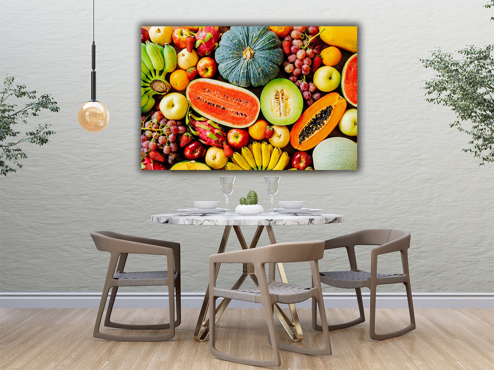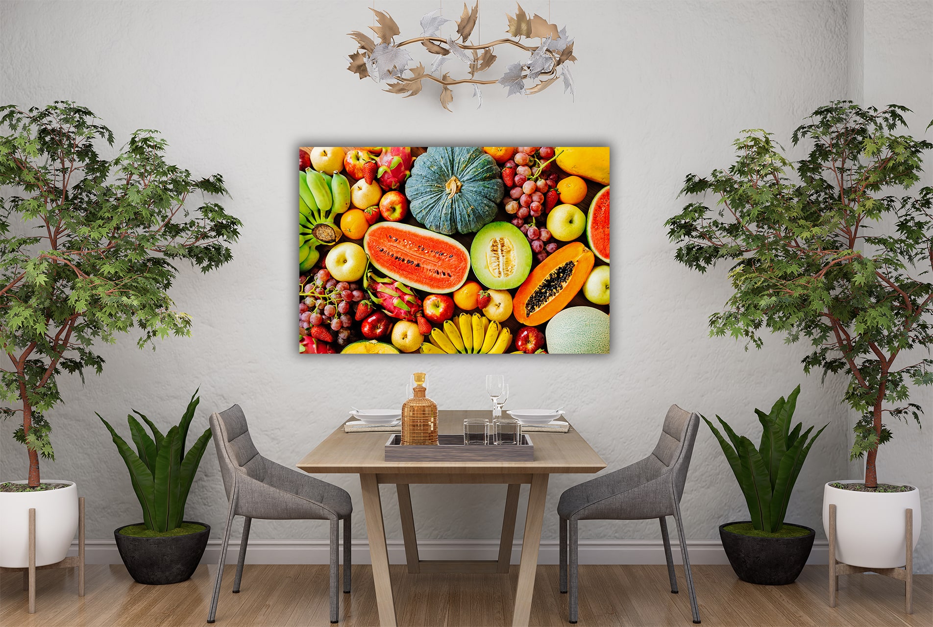 Obstliebhaber kommen bei diesem Wandbild ganz auf Ihre Kosten. Das Bild Bunter Früchtemix passt perfekt über Ihren Esstisch oder in Ihre Küche. Das Leben ist bunt und so sind es auch die Früchte, die in unserer wunderschönen Natur wachsen. Läuft Ihnen auch schon das Wasser im Mund zusammen, wenn Sie auf dieses Motiv sehen?