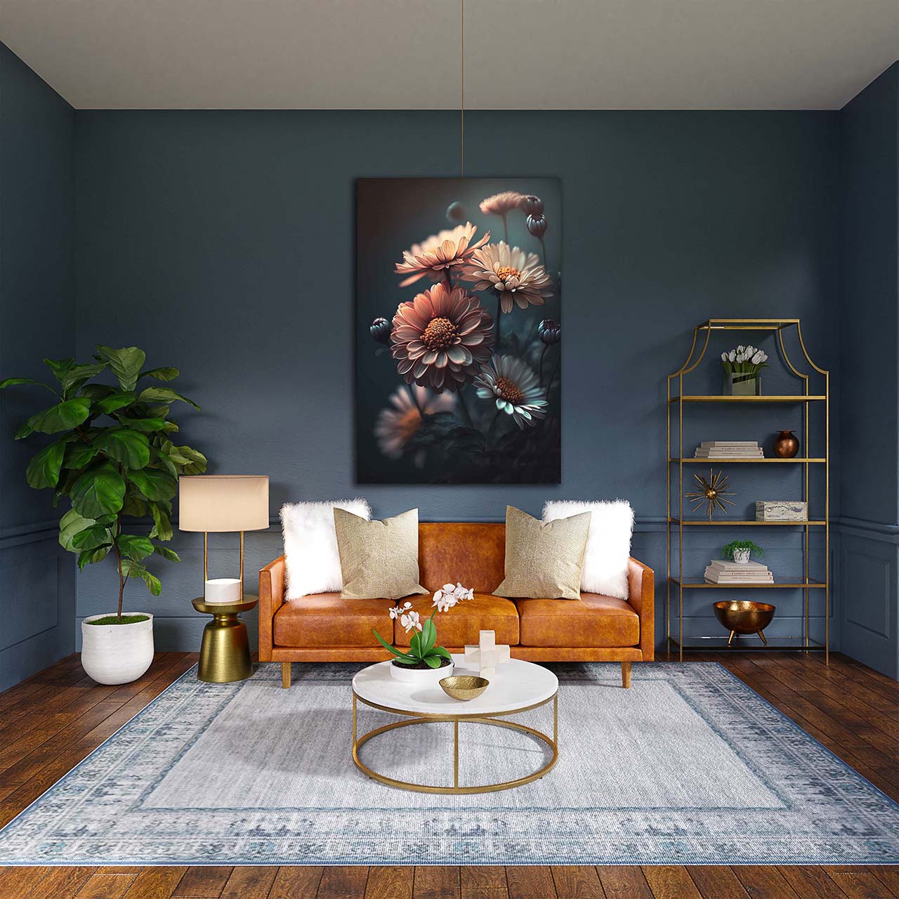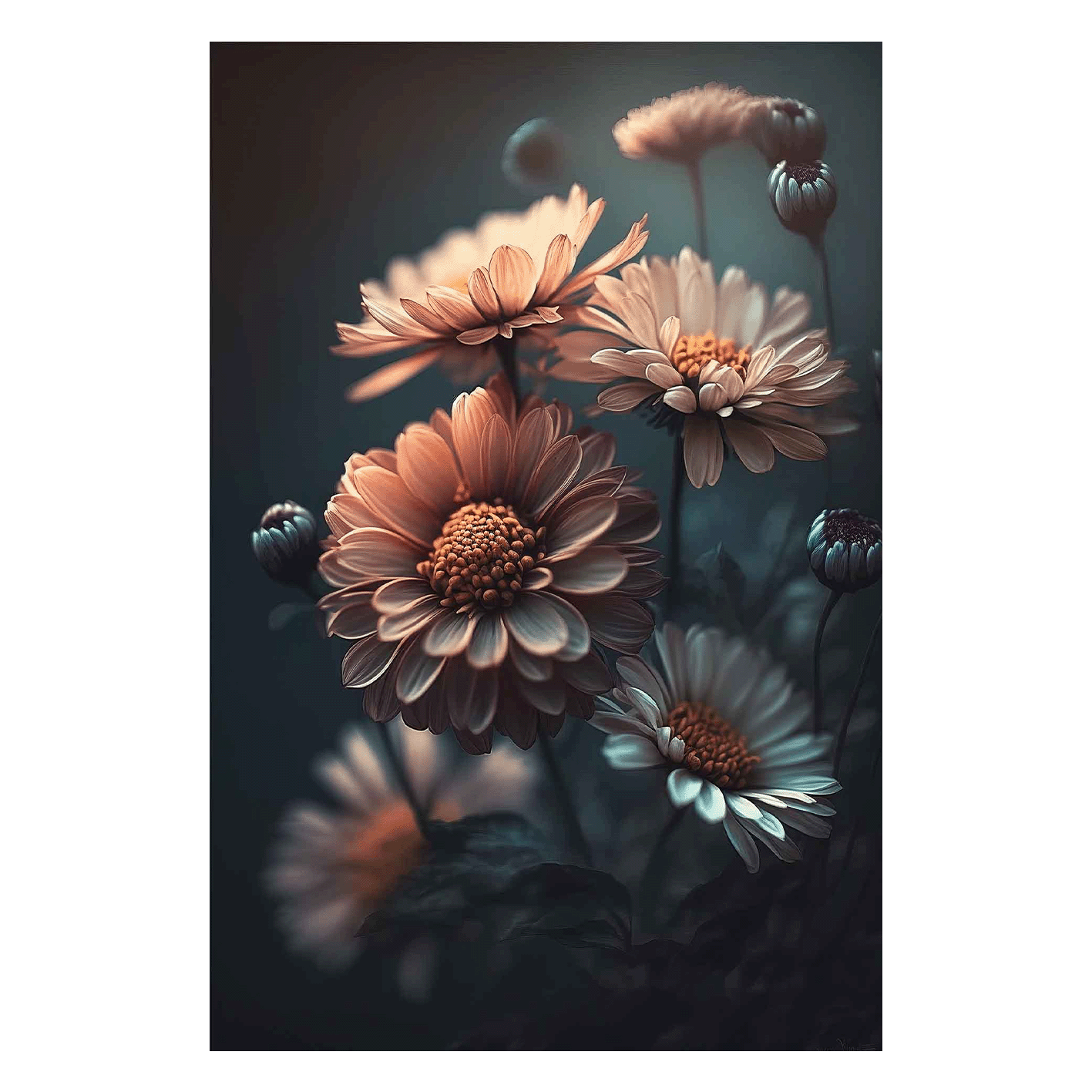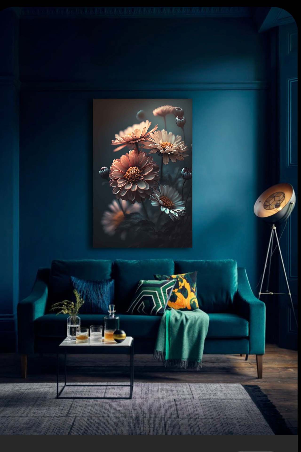 Das Wandbild Chrysantheme ist nicht nur ein ästhetisches Meisterwerk, sondern auch eine Bereicherung für jeden Raum. Die sanften Farben der Chrysanthemen verleihen dem Bild eine ruhige und entspannte Atmosphäre, während der dunkle Hintergrund für einen Hauch von Drama sorgt.