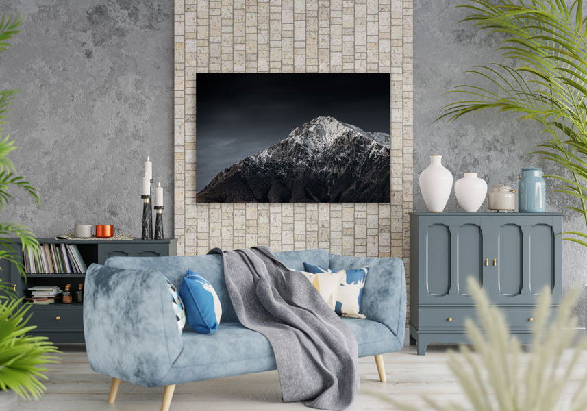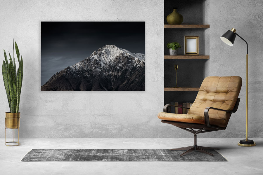 Für Romantik, Wärme und Sinnlichkeit im Wohn- oder auch Schlafzimmer sind Fotografien die perfekte Wahl. Diese besondere Fotokunst von einem dunklen und mystischen Berg ist daher eine wunderbare Ergänzung für ein besonderes Zuhause.
