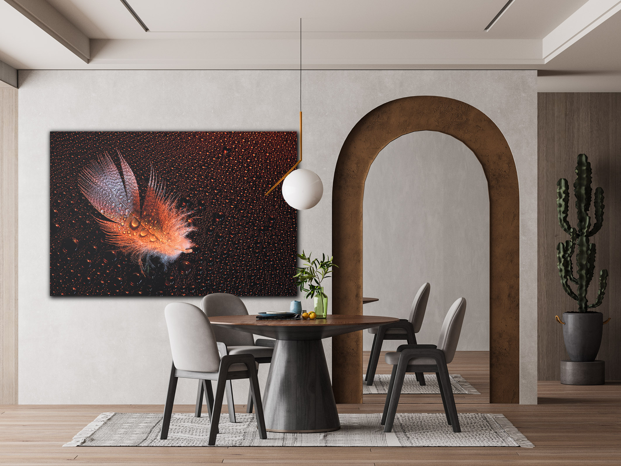 Mit unseren stilvollen Motiven aus der Kategorie Natur & Landschaft, gestaltet als Fotografie, setzen Sie den perfekten Eyecatcher an Ihre Wand und verleiht Ihrer Wohnung im Handumdrehen eine ganz persönliche Note. Ihrer Fantasie sind dabei keine Grenzen gesetzt. Denn dieses Wandbild Feder mit Wassertropfen hinterlässt auch in Wohnzimmer, Loft, Schlafzimmer, Esszimmer, Küche, Kinderzimmer, Flur, Badezimmer aber auch in Büro, Kanzlei sowie im Hotel oder einer Arzt – Praxis einen tollen Eindruck. Ein Wandbild gut in Szene gesetzt, dass eindrucksvoll die Aufmerksamkeit auf sich zieht und am besten im Großformat erscheint.