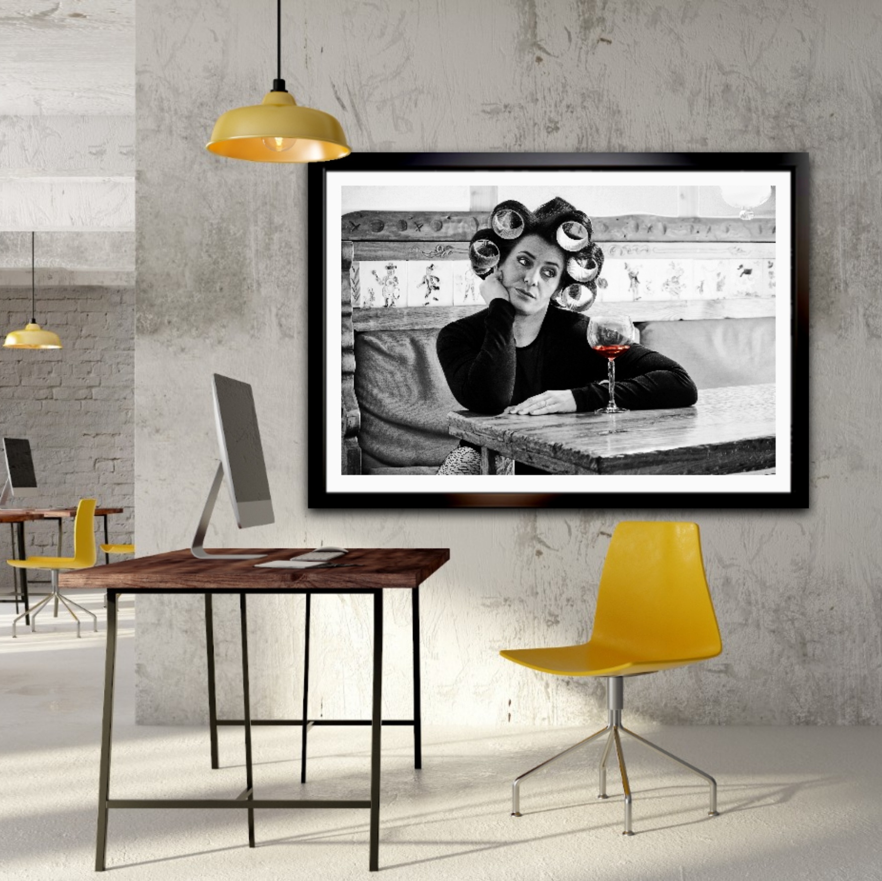 Das Wandbild “Frau mit Rotwein” von Fotografin Sabine Schiebofski fängt perfekt die Atmosphäre eines gemütlichen Abends ein. Das schwarz-weiße Bild zeigt eine Frau, die an einem Tisch sitzt und ein Glas Rotwein genießt. Lediglich das Rotweinglas ist farbig abgebildet und zieht dadurch die Blicke auf sich. Die klaren Linien und Kontraste verleihen dem Bild eine zeitlose Eleganz.
