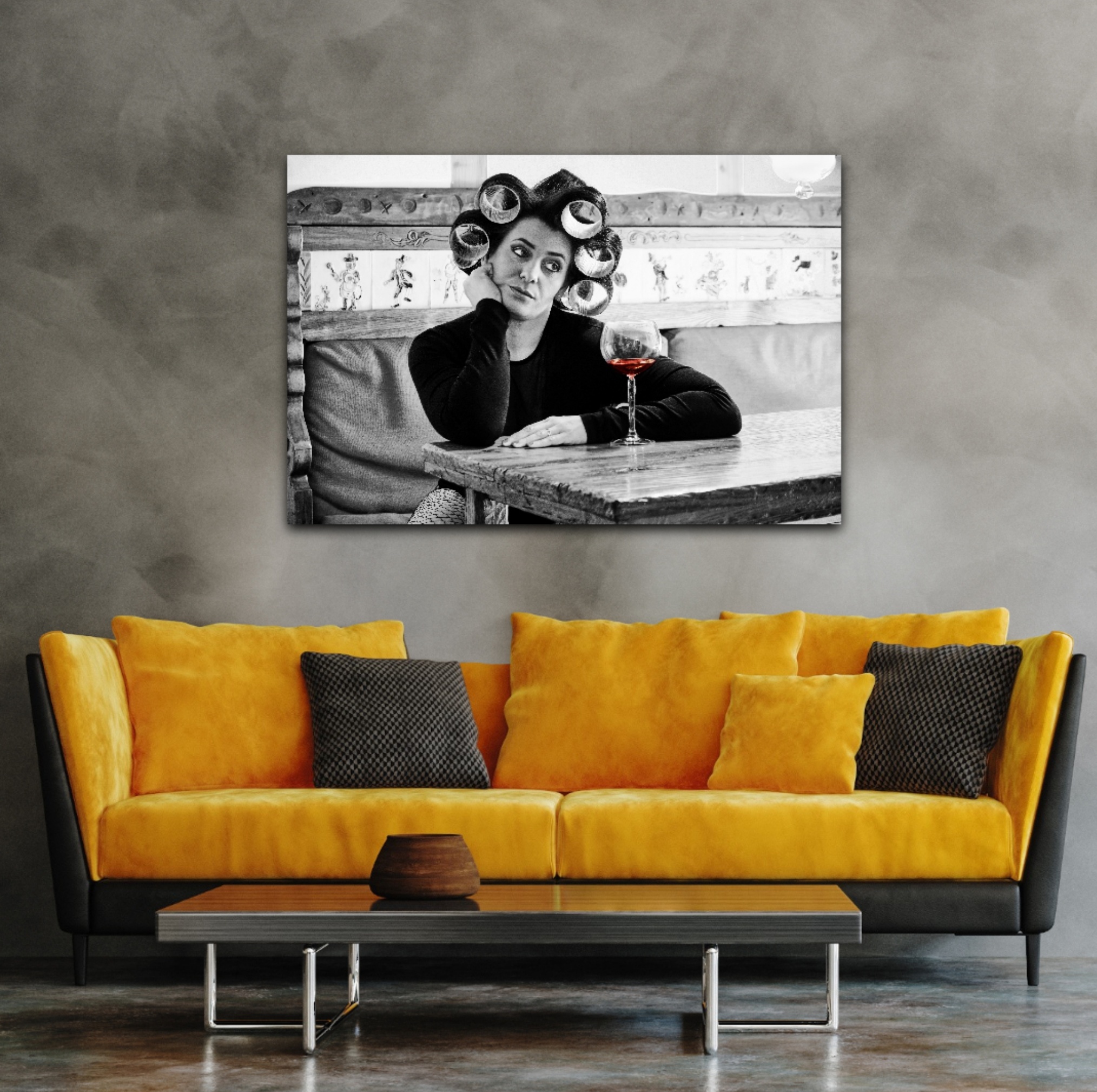 Erwecken Sie mit dem Wandbild “Frau mit Rotwein” die Stimmung eines gemütlichen Abends zum Leben und bringen Sie ein Stück Kunst in Ihr Zuhause.