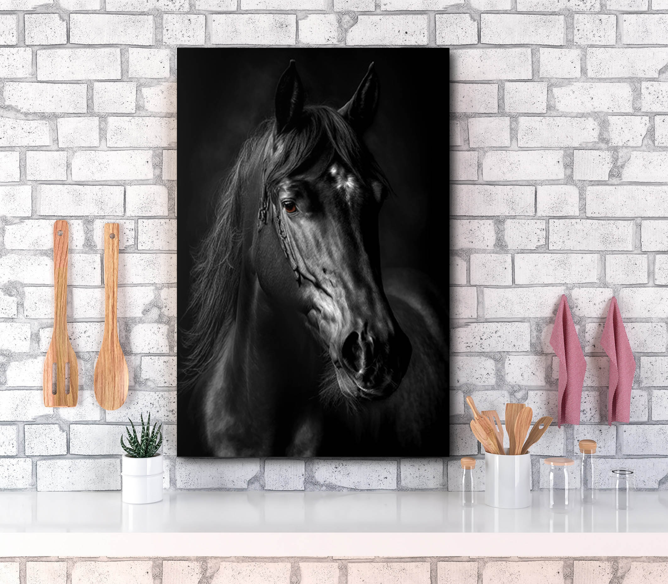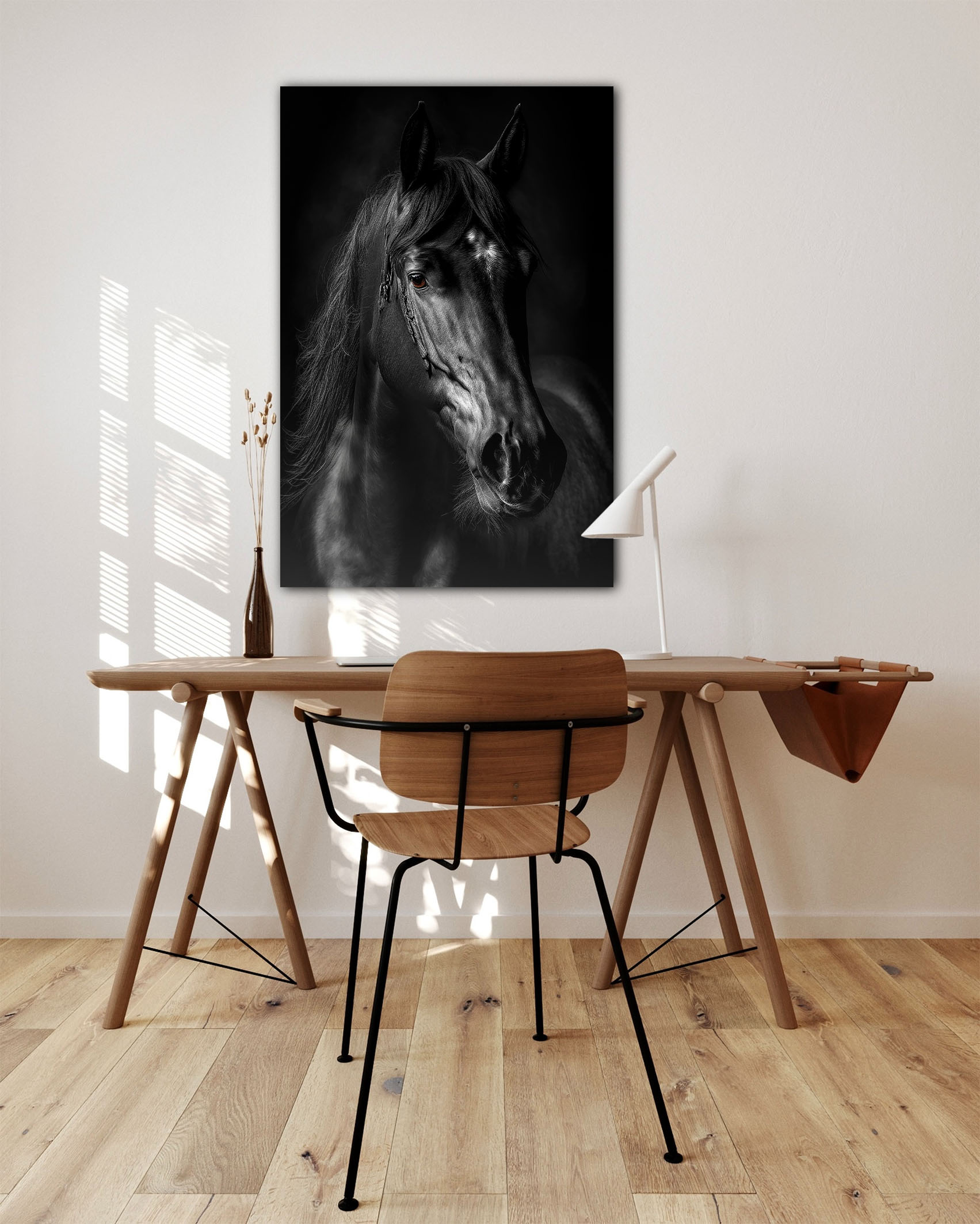 Dank seiner zeitlosen Schönheit und des markanten Designs eignet sich das Wandbild Horse ideal als Blickfang für Wohnzimmer, Schlafzimmer, Büros oder Empfangsbereiche. Es lässt sich nahtlos in verschiedene Einrichtungsstile integrieren und verleiht jedem Raum eine anspruchsvolle Atmosphäre.