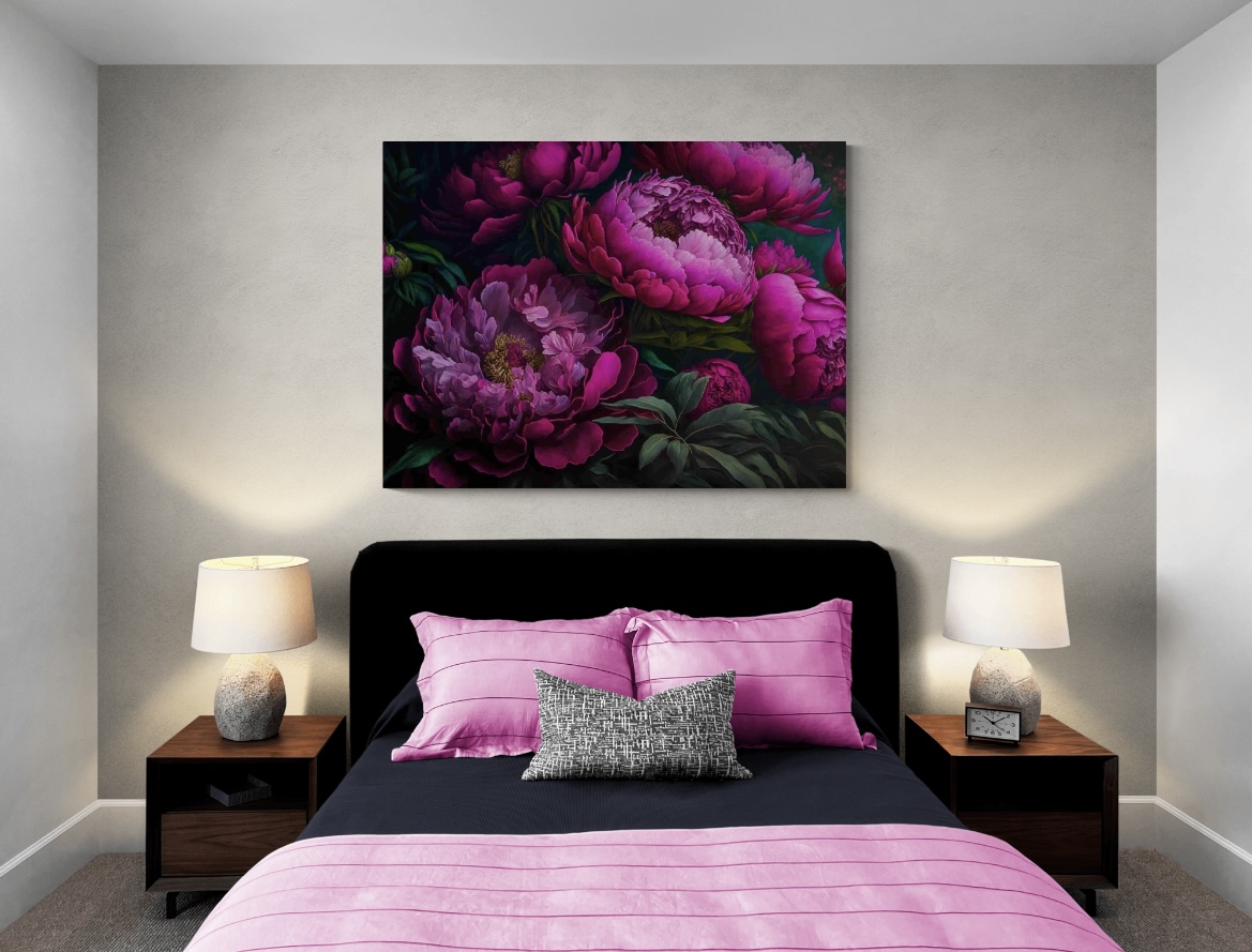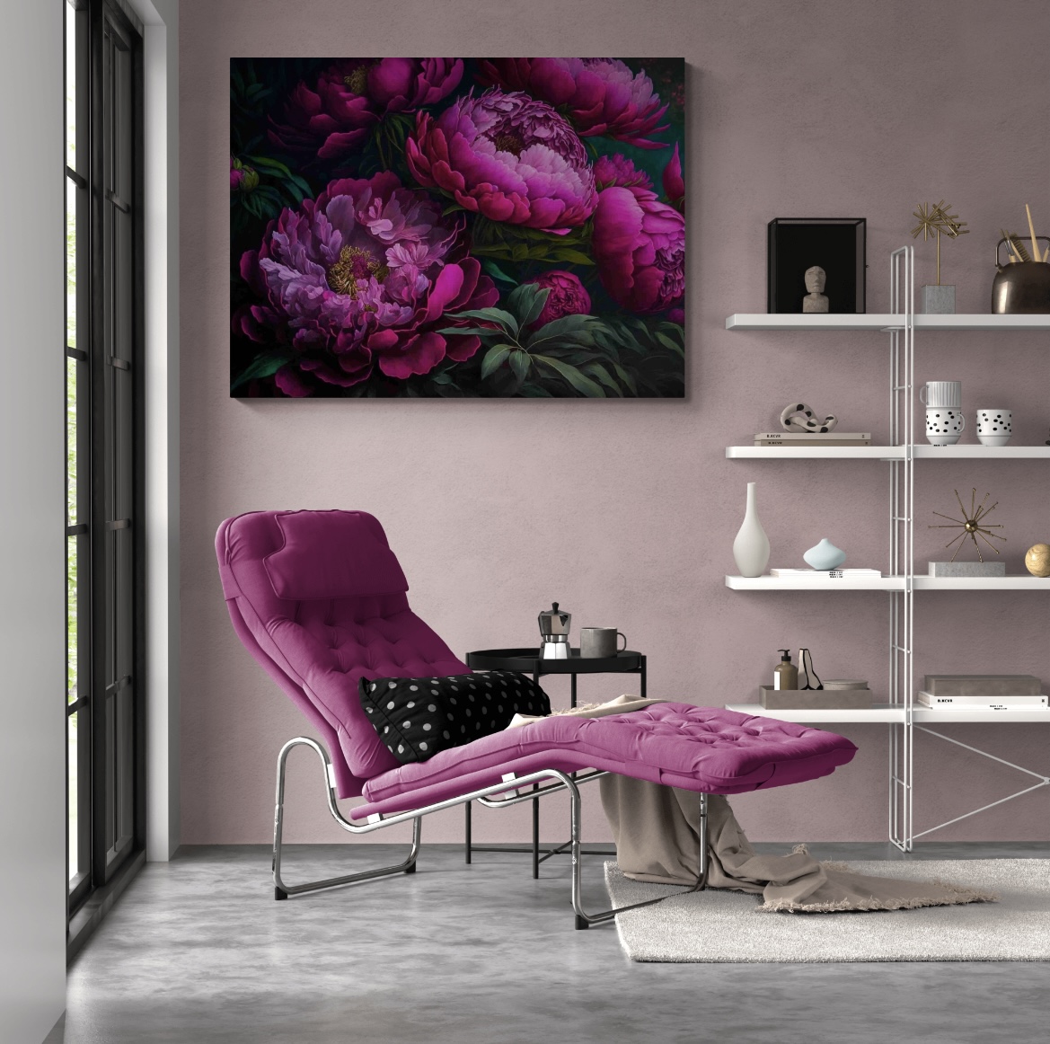 Das Bild entfaltet seine volle Wirkung an einer schlichten und zurückgenommenen Wand, wo es zu einer wahren Augenweide wird. Mit diesem Wandbild Magenta Peonies können Sie Ihrem Raum eine besondere Atmosphäre verleihen und sicherlich viele bewundernde Blicke ernten.