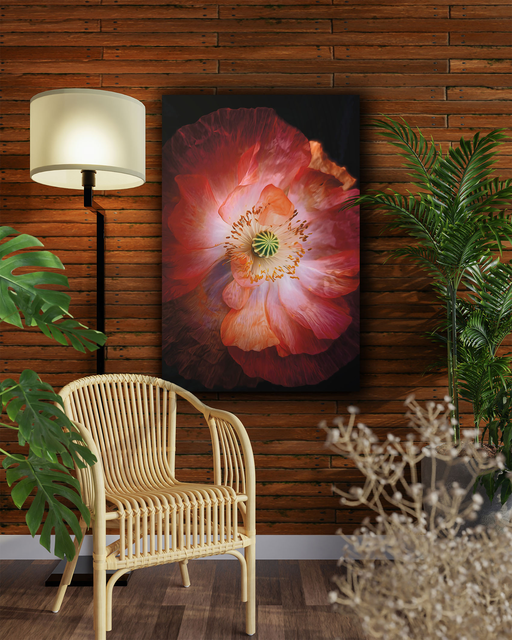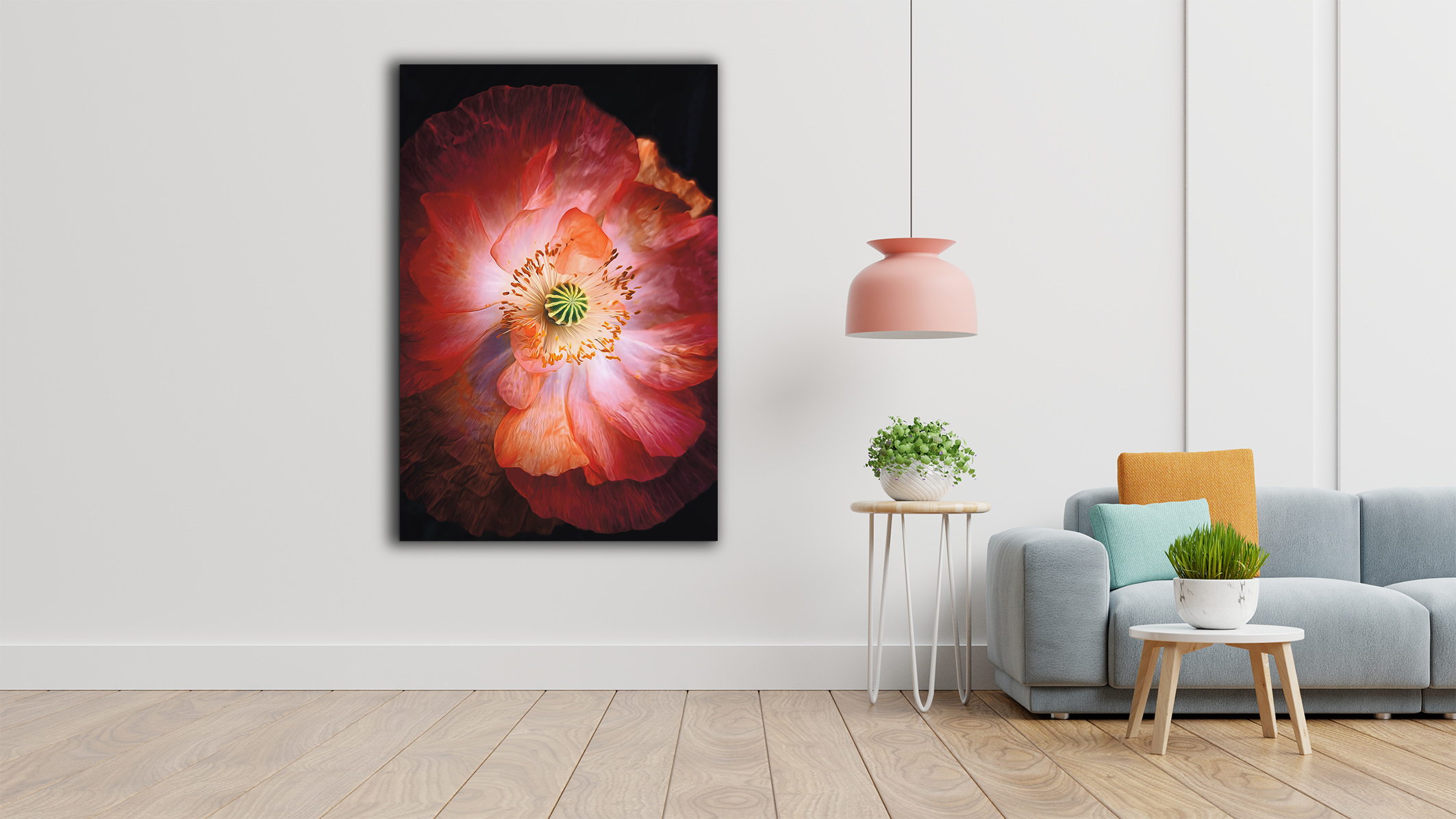 Mit dieser tollen Fotografie von Carola Haese holen Sie sich ein Stück Natur in Ihr Zuhause. Diese Nahaufnahme einer zarten Mohnblüte ist immer eine tolle Ergänzung im Wohnzimmer, Flur oder Schlafzimmer. Dieses Wandbild entfaltet seine Wirkung auf einer zurückgenommen Wand. Dadurch wirkt der Eyecatcher noch intensiver. Das Bildes zieht einen direkt in den Bann. Können Sie wegschauen oder sind Sie genauso fasziniert?