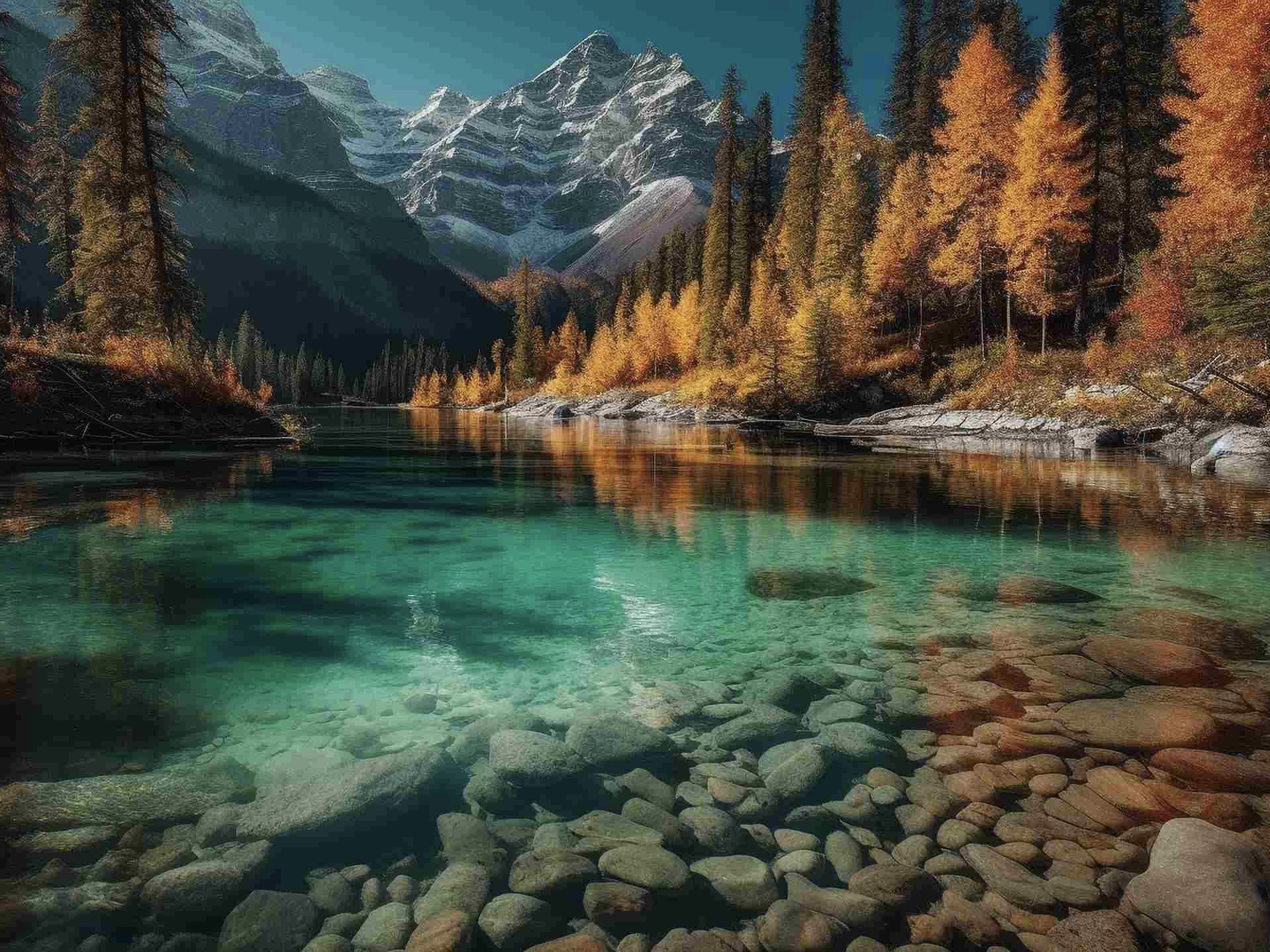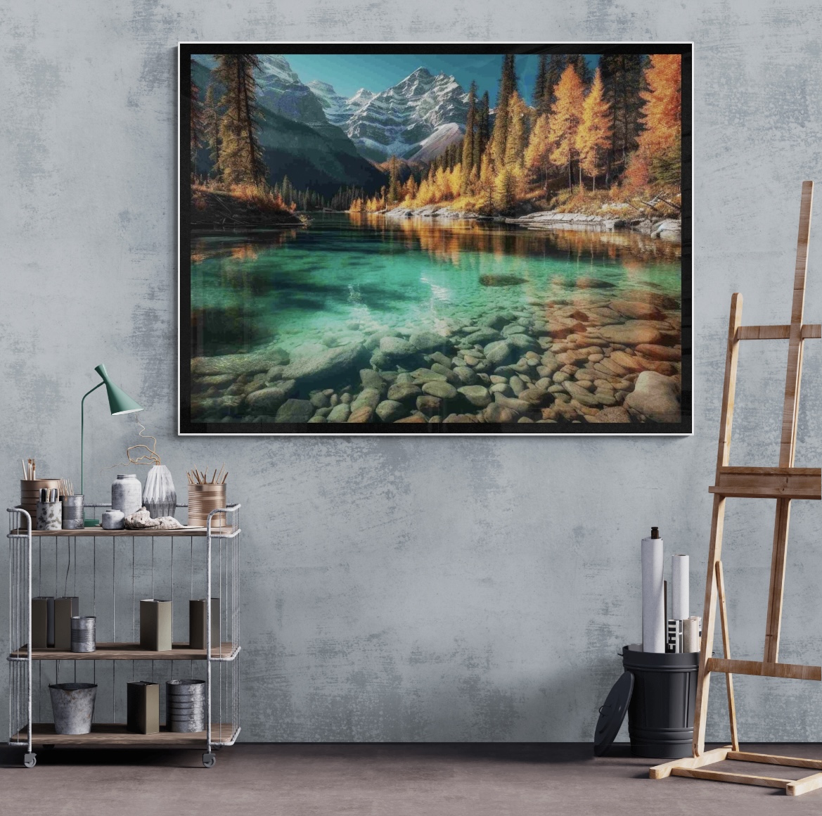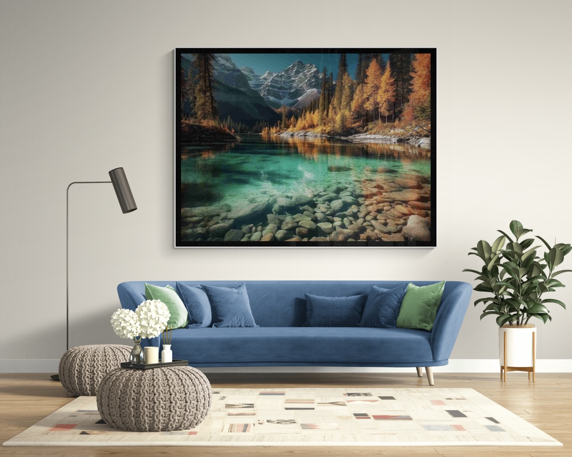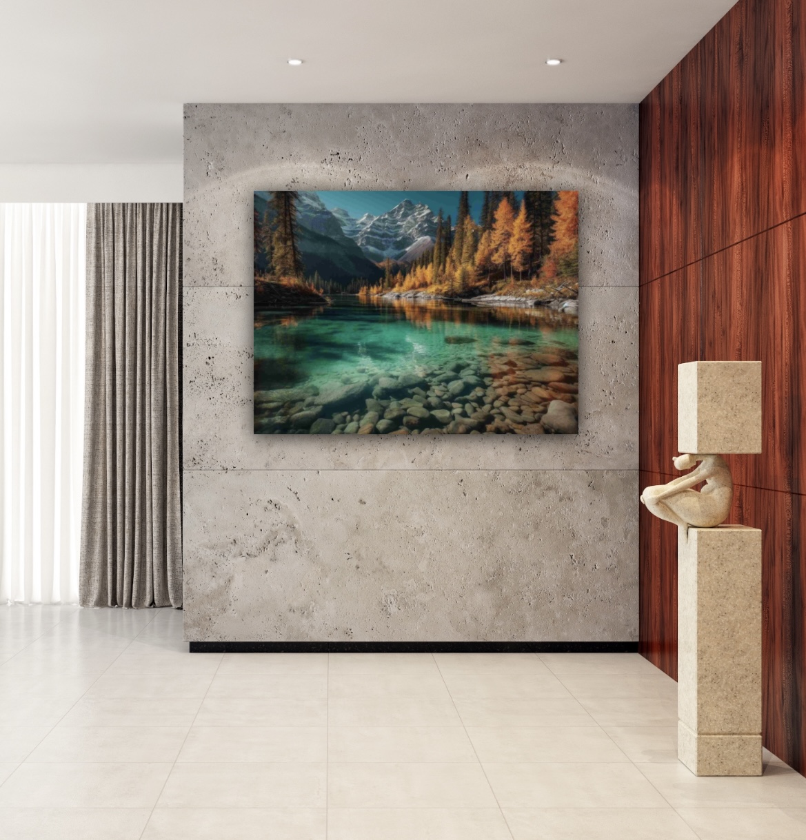 Das Wandbild Mountin Peak ist ein wahrer Blickfang für jeden Raum. herrliche Berge, tolles Licht, schöne Waldfärbung, glasklares Wasser, Landschaft spiegelt sich im Wasser. Wanderfreunde Lust auf Bergwanderung