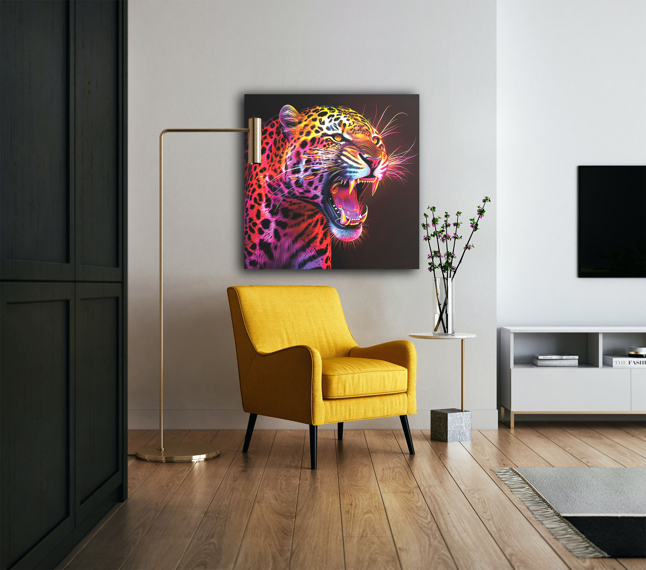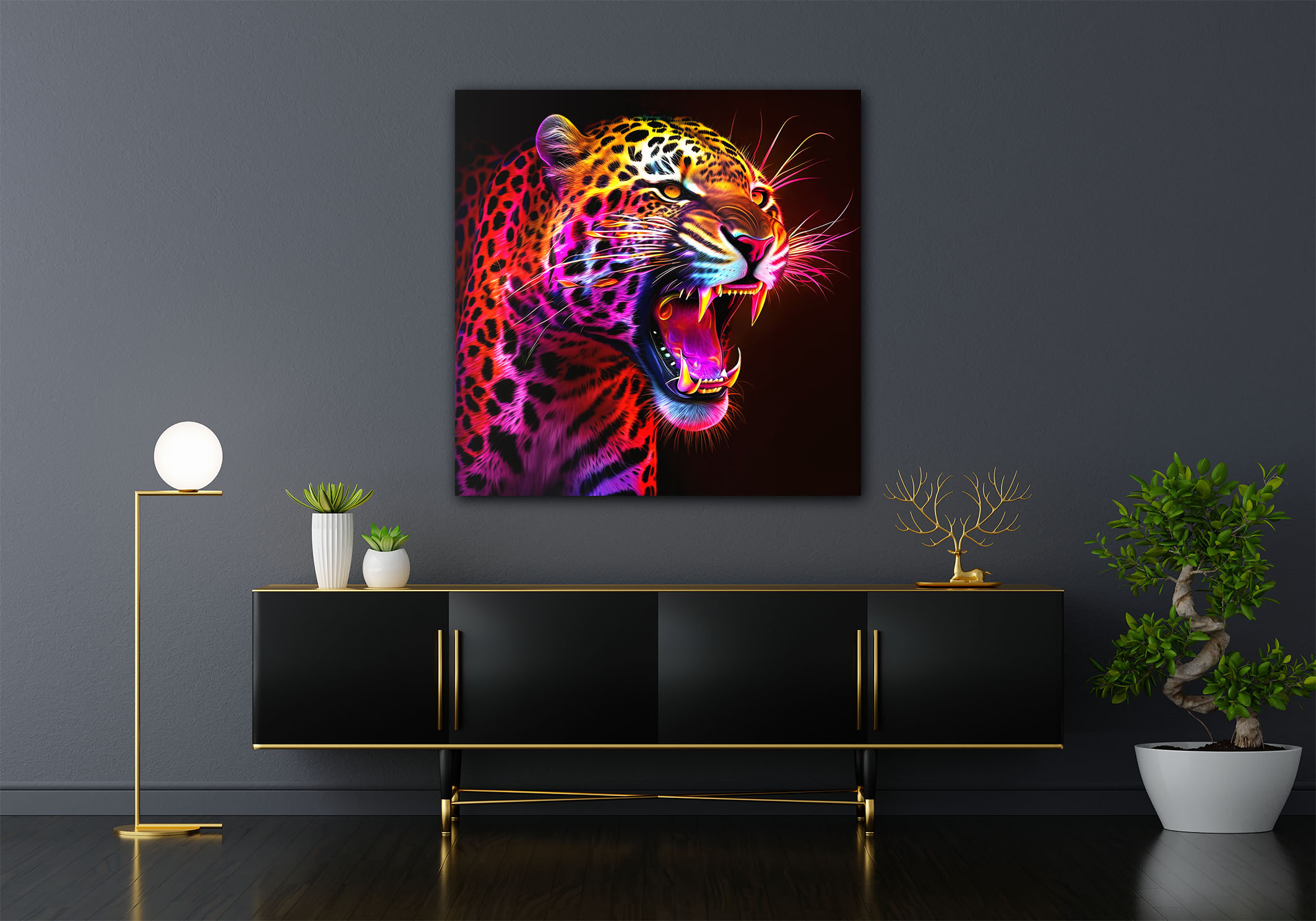 Hochwertig verarbeitet und mit großer Sorgfalt von Hand gefertigt, wird das Neon Cheetah Wandbild jedes Interieur aufwerten. Ob im Wohnzimmer, Schlafzimmer oder Büro – dieses Kunstwerk wird garantiert zum Blickfang an jeder Wand.