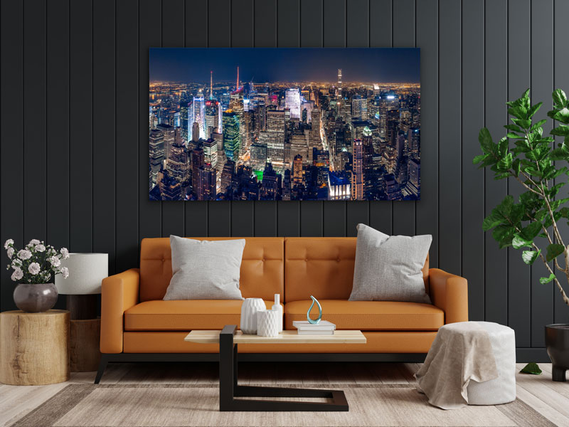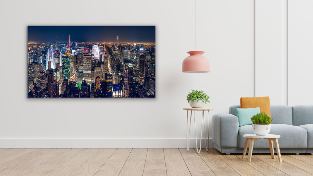 Dies Fotokunst zeigt die Skyline von New York City bei Nacht. Möchten Sie sich von dieser modernen Stadt inspirieren lassen? Dann wählen Sie diese Wanddekoration für Ihr Interieur. Diese Skyline bringt eine lebendige Atmosphäre in Ihr Zuhause und ist daher der ideale Blickfang im Wohnzimmer.