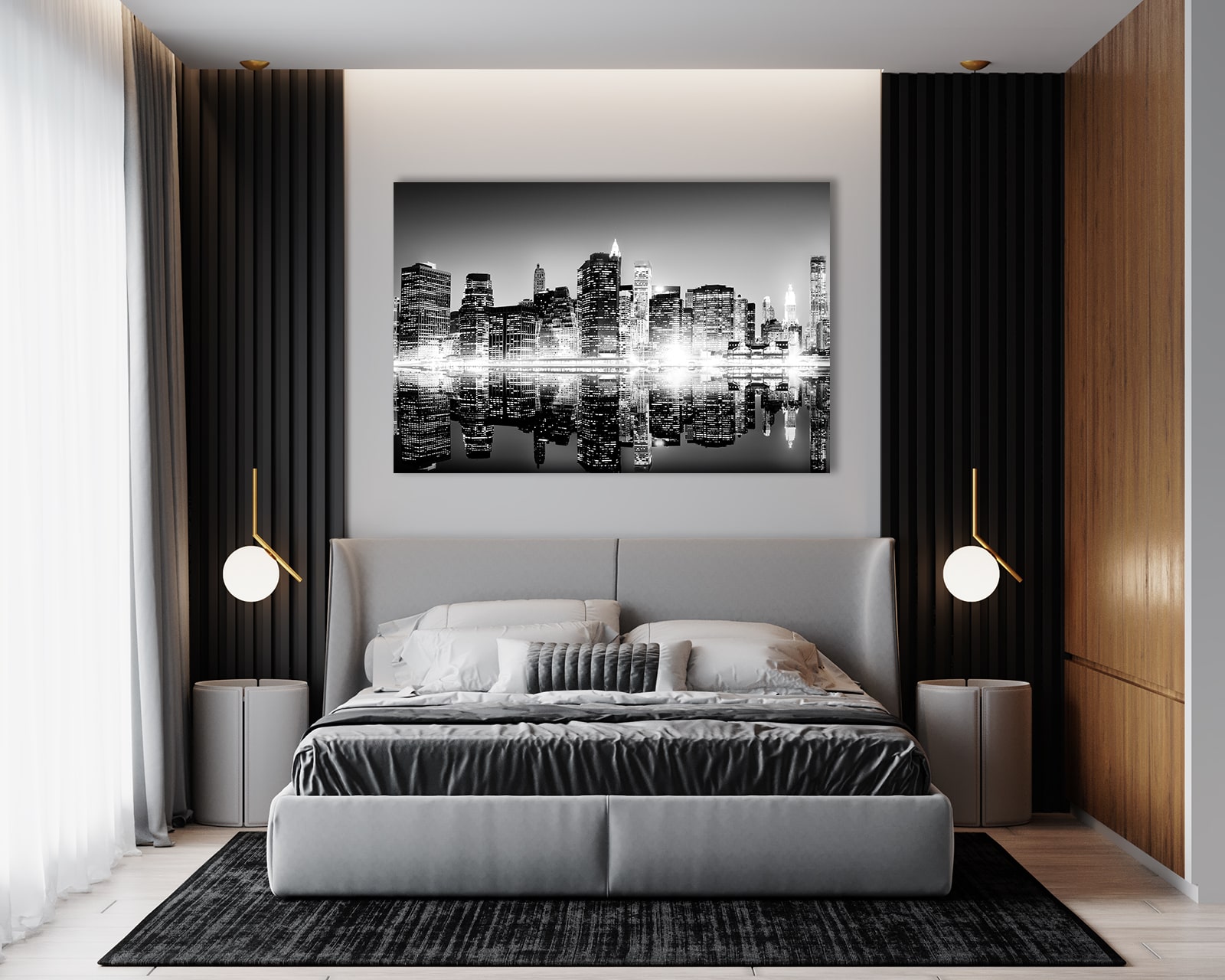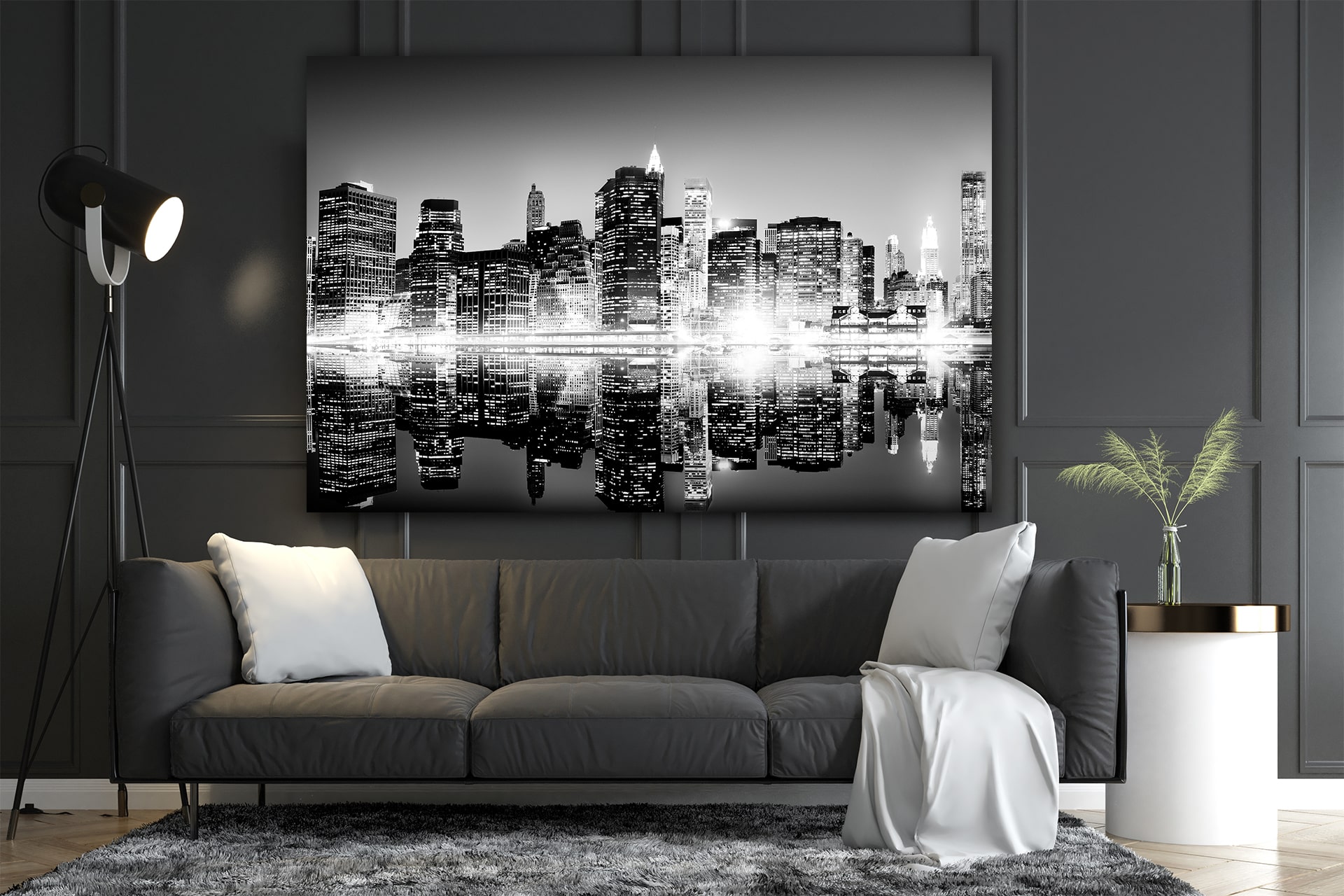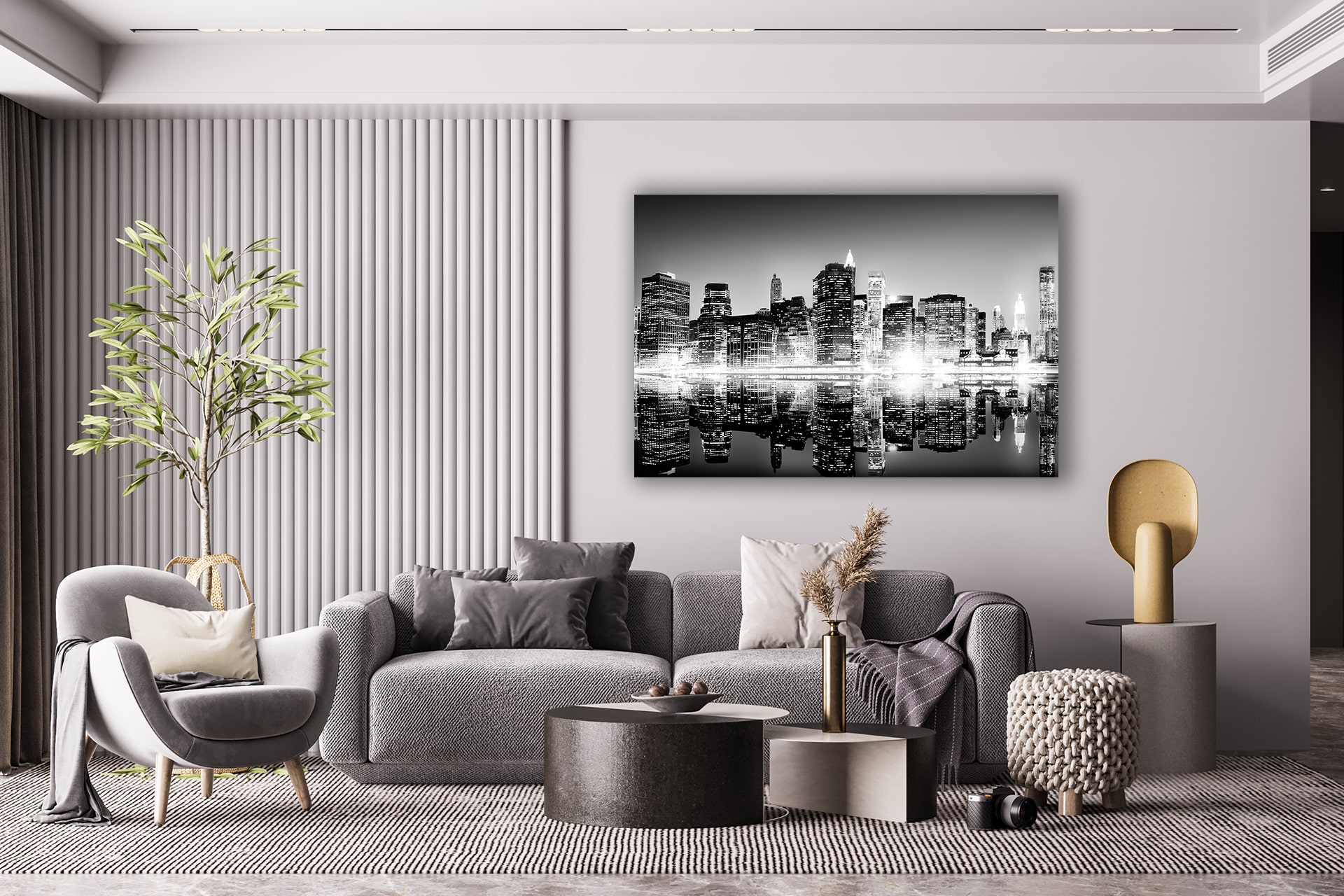 Die Skyline New York – die wahrscheinlich berühmteste Skyline jetzt in Ihrem Wohnzimmer. In schwarz-weiß wirken die Architektur und die Lichter eleganter und aufregender. Unsere Emfehlung: Mit einem Druck auf Alu-Dibond gebürstet heben Sie das Motiv auf ein ganz neues Level.