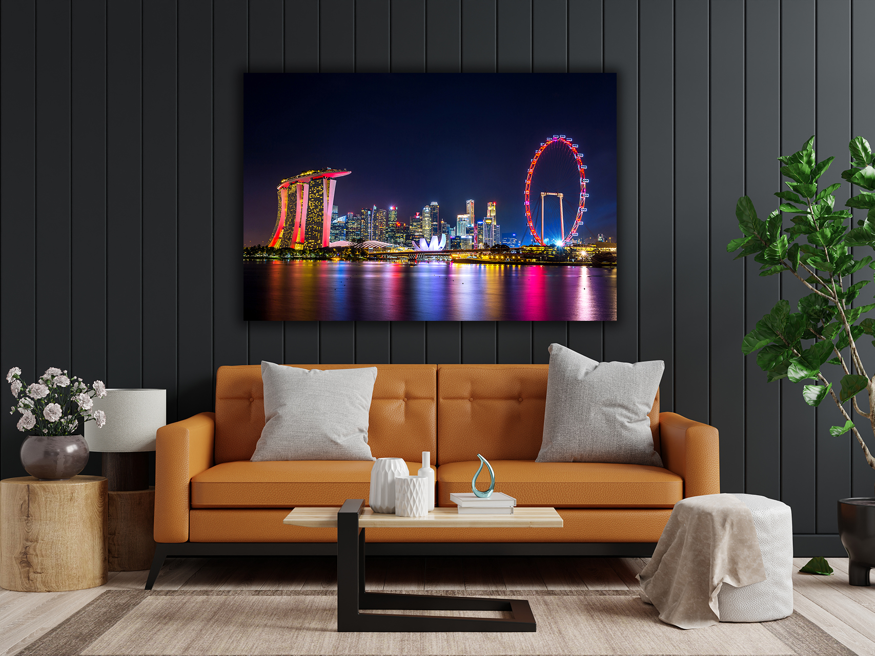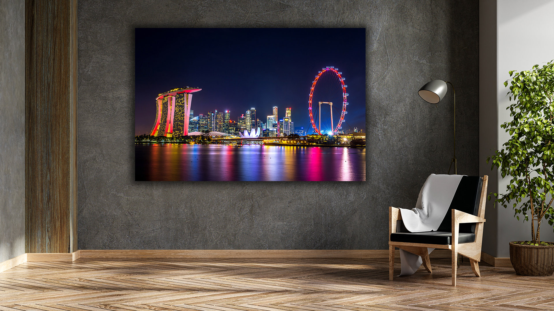 Damit dieses Motiv perfekt wirkt, empfehlen wir Ihnen für das Wandbild Panorama von Singapur das Material Acrylglas oder Alu-Dibond.