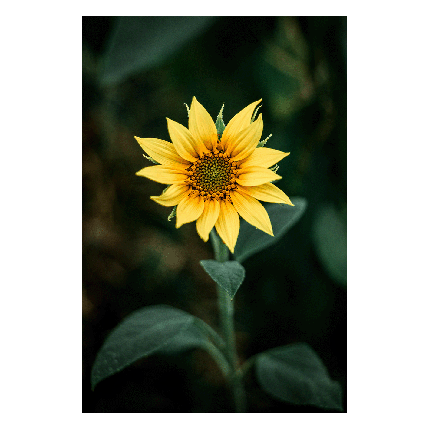 Die meisterhafte Fotografie fängt das unvergleichliche Wesen der Sonnenblume ein, während sie in den ersten Momenten ihres Wachstums erblüht. Die zarten Details der Blütenblätter und die leuchtenden Farben erwecken das Bild zum Leben und vermitteln ein Gefühl von frischer Lebendigkeit.