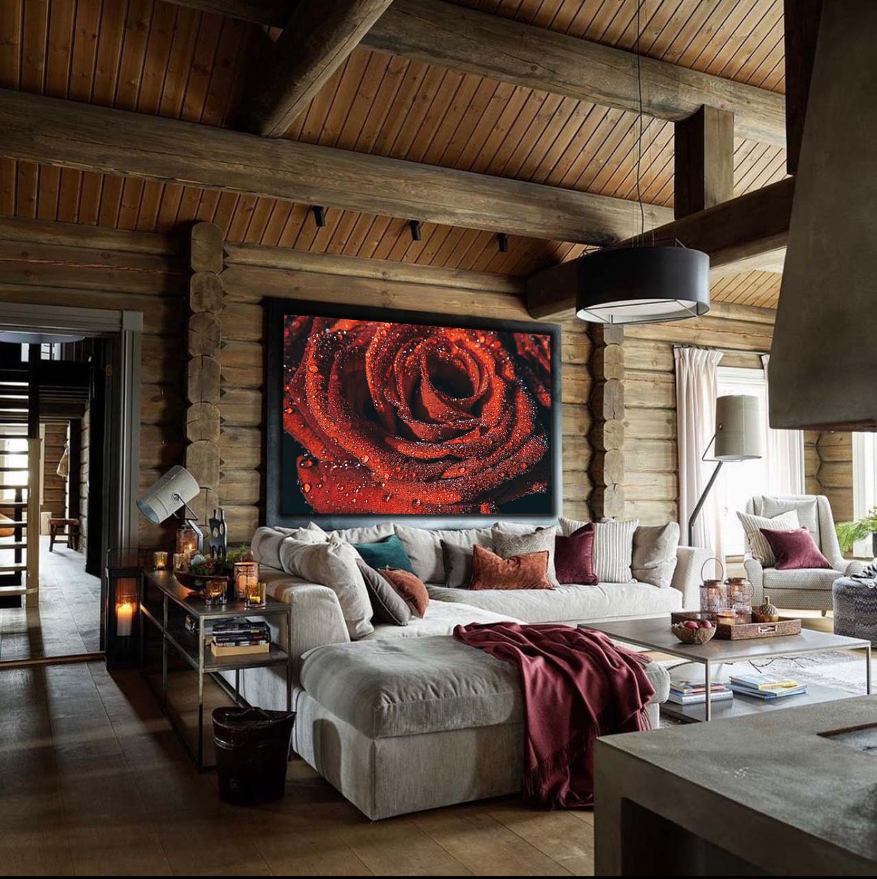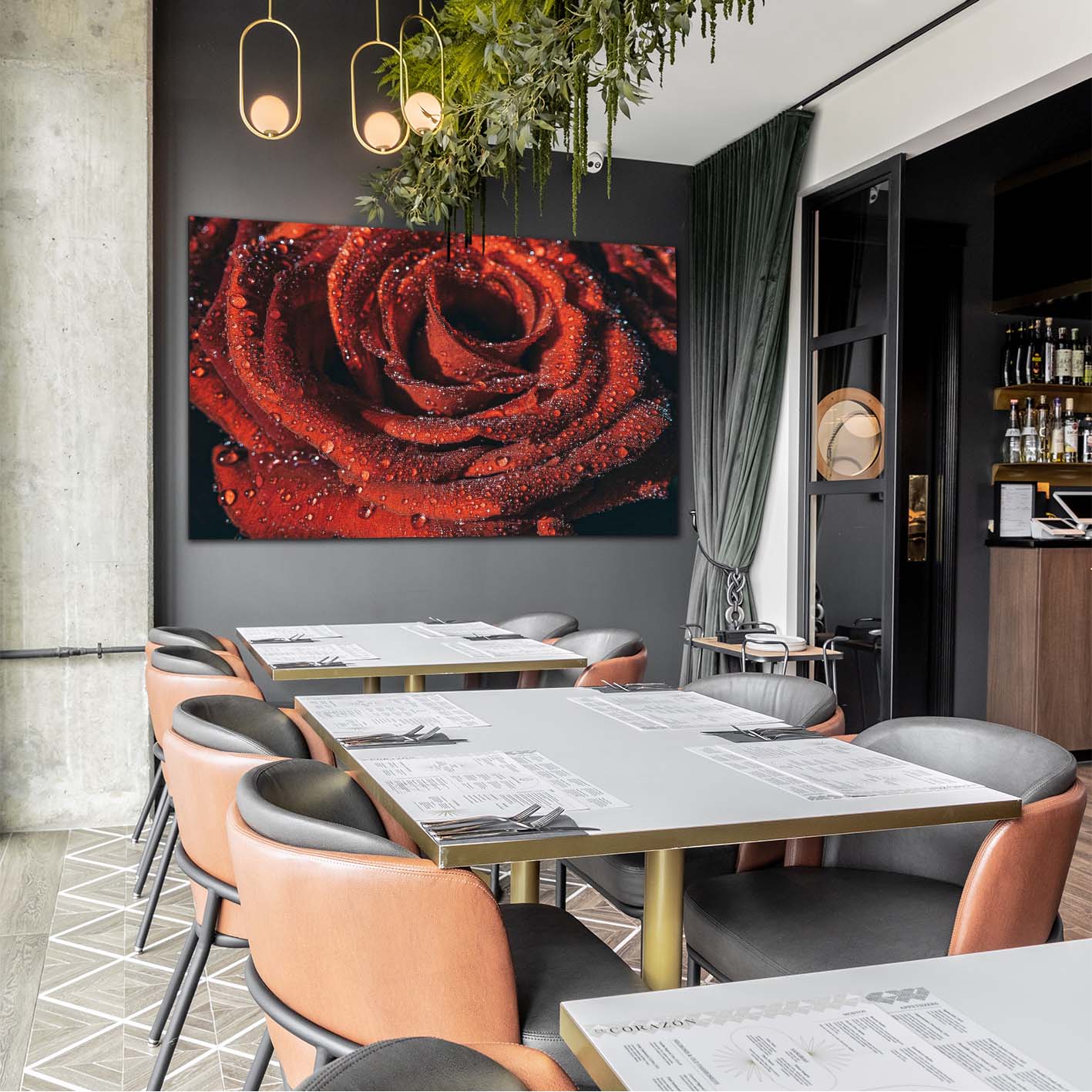 Das Wandbild ist in verschiedenen Größen erhältlich, damit es perfekt in dein Zuhause oder Büro passt. Egal ob im Wohnzimmer, Schlafzimmer oder Flur – die Nahaufnahme der Rosenblüte wird zum Blickfang und zieht bewundernde Blicke auf sich.