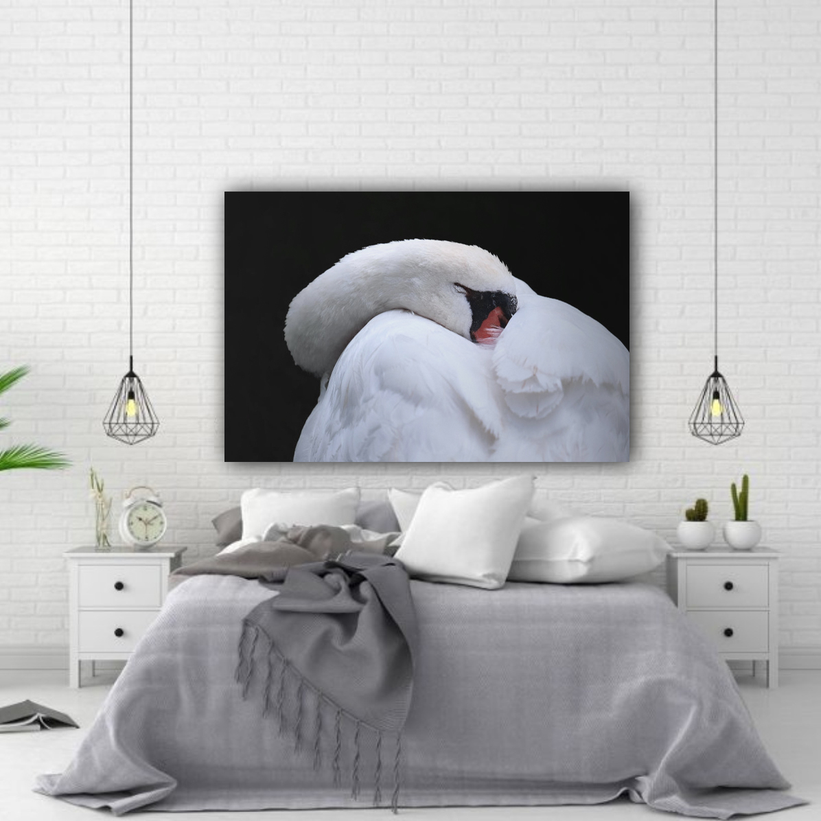 Mit diesem stilvollen Motiv von Sabine Schiebofski setzen Sie den perfekten Eyecatcher an Ihre Wand und verleihen Ihrer Wohnung eine ganz persönliche Note. Ihrer Fantasie sind keine Grenzen gesetzt. Denn dieses Motiv Wandbild Schwan hinterlässt auch im Wohnzimmer, Flur, Esszimmer oder Schlafzimmer einen tollen Eindruck. Diese Nahaufnahme zieht einen direkt in den Bann. Können Sie wegschauen oder sind Sie genauso fasziniert?