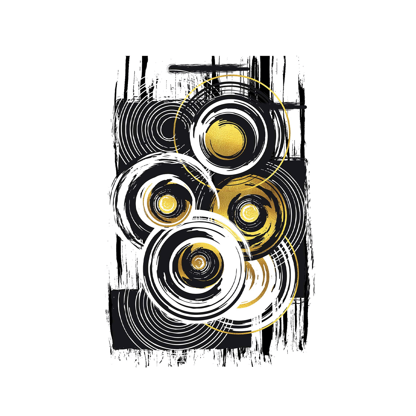 Entdecken Sie das Wandbild Schwere Last von Melanie Viola – eine Meisterklasse moderner abstrakter Kunst, die Eleganz neu definiert. Dieses außergewöhnliche Kunstwerk präsentiert ein experimentelles Vektormalerei, geschaffen mit vielfältigen Pinselstrichen in tiefem Schwarz und reinem Weiß, die durch zarte goldene Highlights akzentuiert werden.