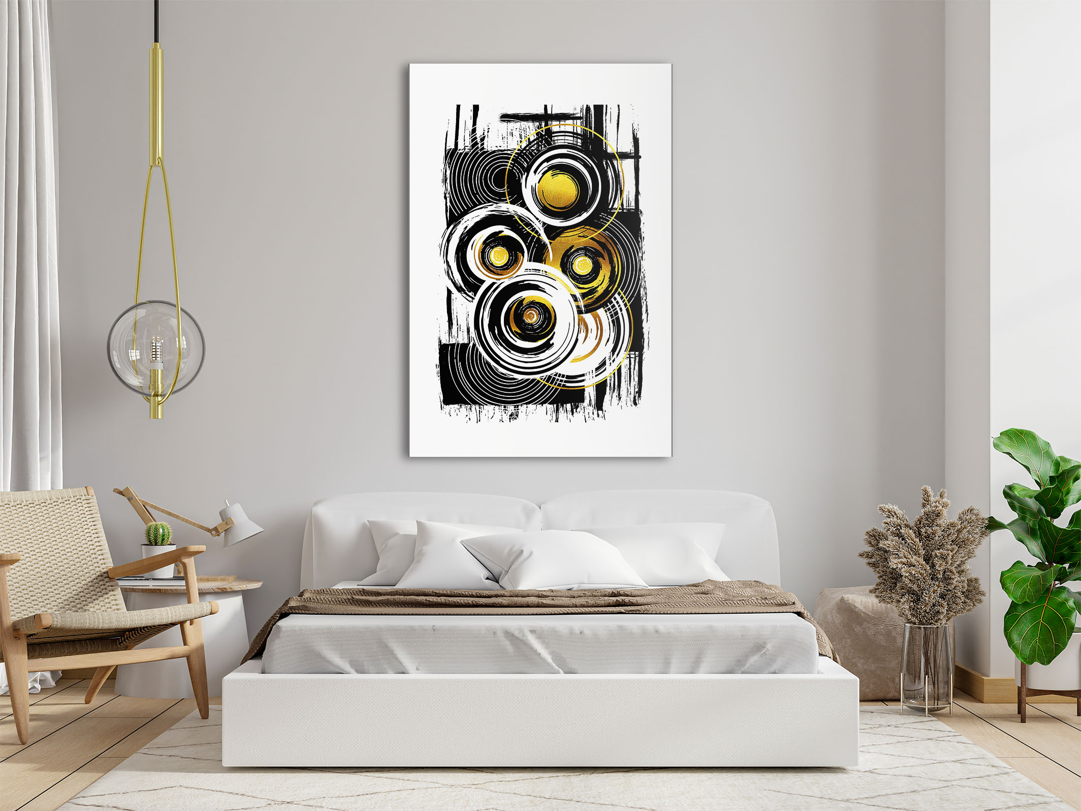 Ob in Ihrem Wohnzimmer, Büro oder einem anderen Raum, das Wandbild Schwere Last zieht Blicke auf sich und wird sicherlich zum Gesprächsthema. Die gekonnte Kombination aus experimenteller Vektormalerei, subtilen Farbnuancen und einem Hauch von Gold verleiht diesem Kunstwerk eine einzigartige Anziehungskraft.