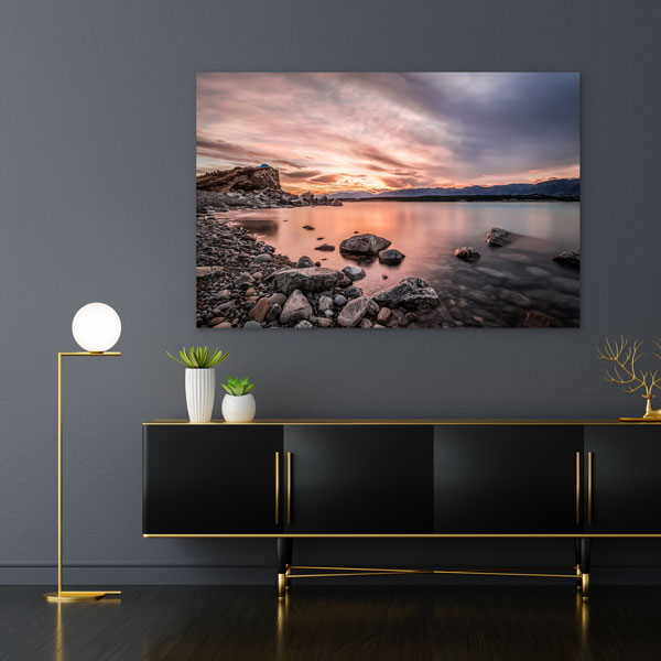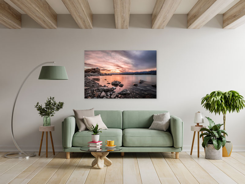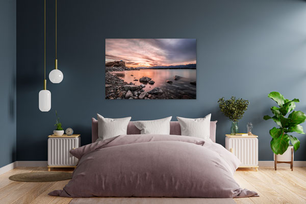 Ein Sonnenuntergang am See – was für ein atemberaubender Moment! Eine Farbenpracht mit traumhaften Szenerien. Eine wunderschöne romantische Stimmung passend zu jedem Interior.