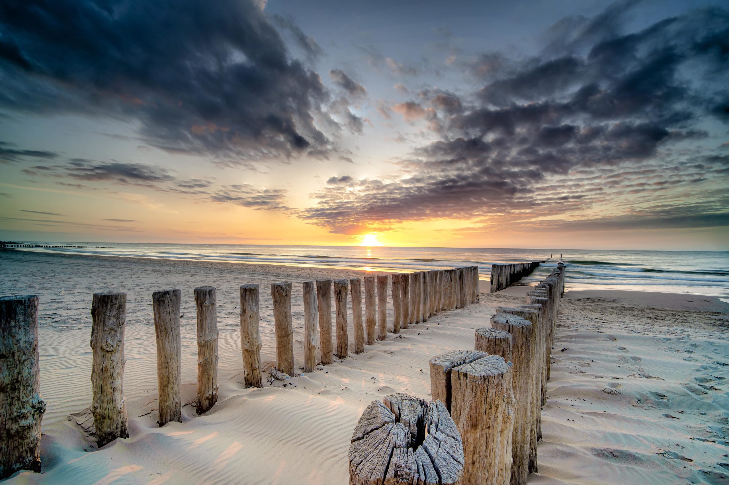 Ein Landschaftsfoto mit einem wunderschönem Sonnenuntergang am Strand. Ein Foto zum Träumen und passend zu jedem Interior.