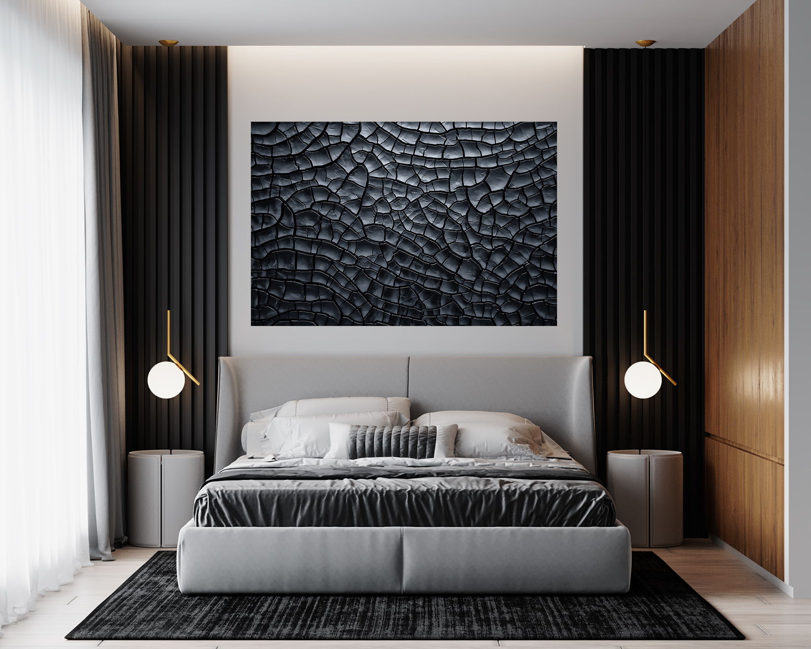 Damit dieses Motiv perfekt wirkt, empfehlen wir Ihnen für das Wandbild Trockener Boden das Material Alu-Dibond Silber gebürstet.