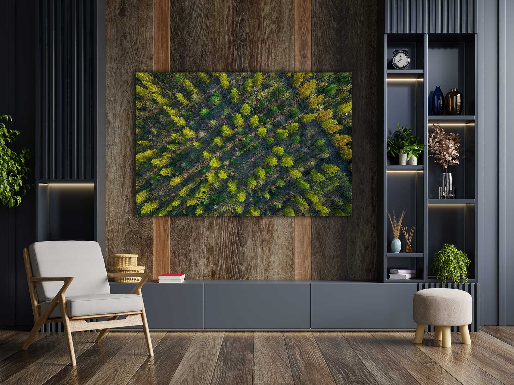 Entdecken Sie die faszinierende Schönheit der Natur mit unserem Wandbild Wald von oben. Dieses außergewöhnliche Kunstwerk zeigt einen Wald aus der Vogelperspektive, bei dem die Bäume ein beeindruckendes Muster aus verschiedenen Grüntönen bilden. Tauchen Sie ein in die natürliche Harmonie und holen Sie sich die Ruhe und Magie eines Waldes direkt an Ihre Wände.
