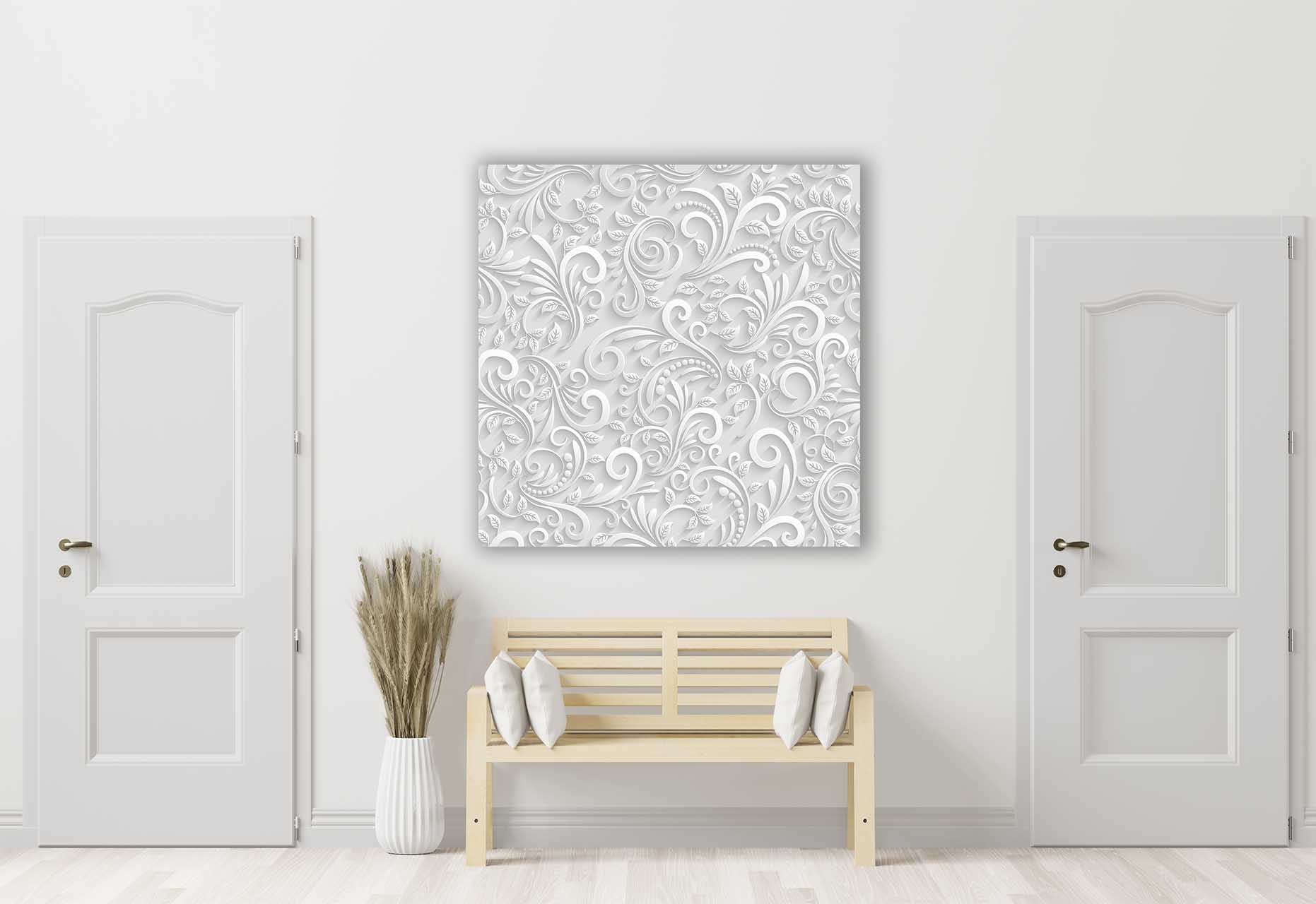 Damit dieses Motiv perfekt wirkt, empfehlen wir Ihnen für das Wandbild Weisser Stuck das Material Acrylglas.